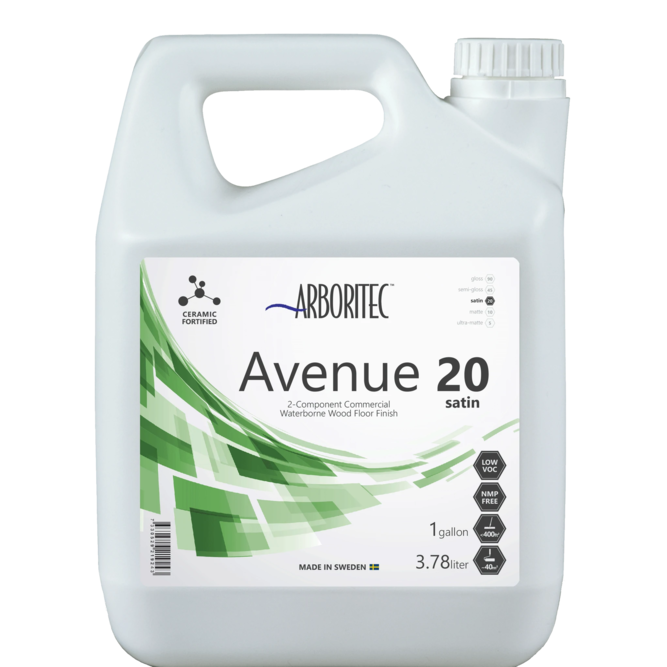 Lakier dwuskładnikowy Arboritec Avenue jest odporny na ścieranie, do pomieszczeń komercyjnych i mieszkalnych o podwyższonym obciążeniu. Wyprodukowano w Szwecji