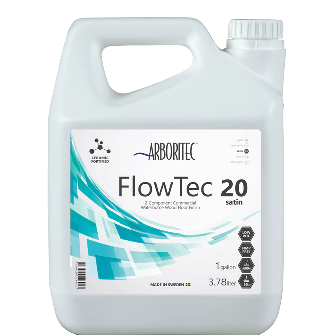 Profesjonalny lakier Arboritec Flow Tec o podwyższonej odporności na zużycie nie zawiera rozpuszczalników. Wyprodukowano w Szwecji