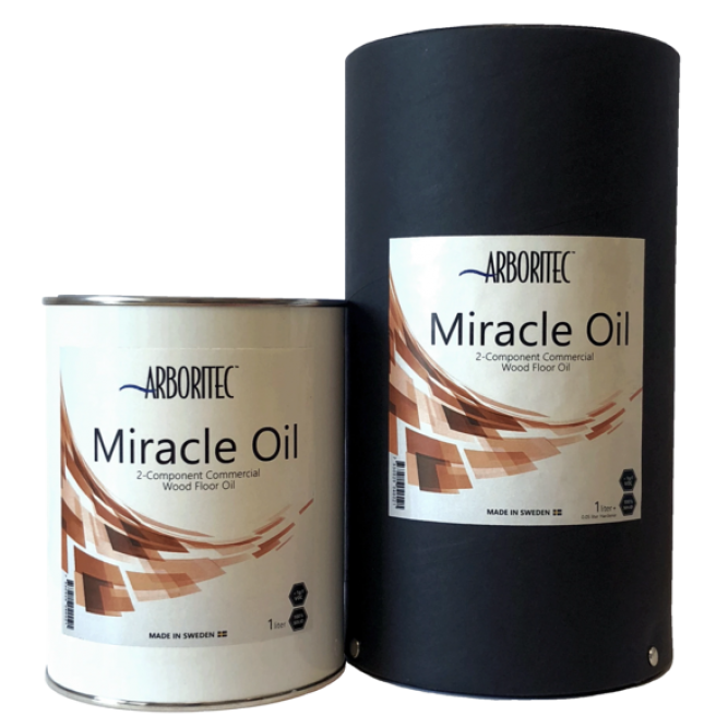Miracle Oil naturalny dwuskładnikowy olej Arboritec bez rozpuszczalników do obróbki okładzin drewnianych, podłóg, mebli, schodów, drzwi.