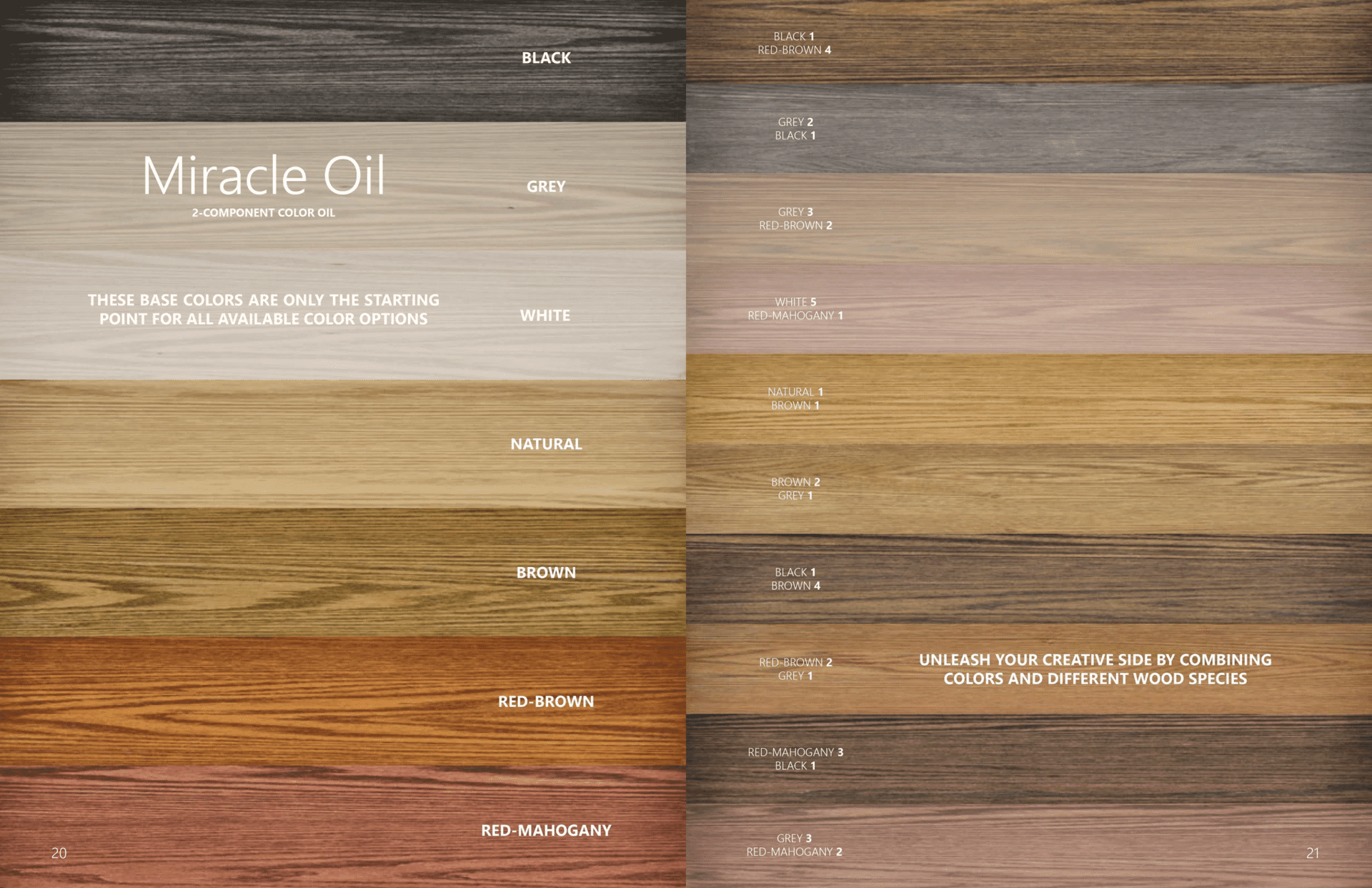 Wymieszaj Miracle Oil z utwardzaczem (1:20) i dobrze wymieszaj. Kompozycję należy zużyć w ciągu 4 godzin.